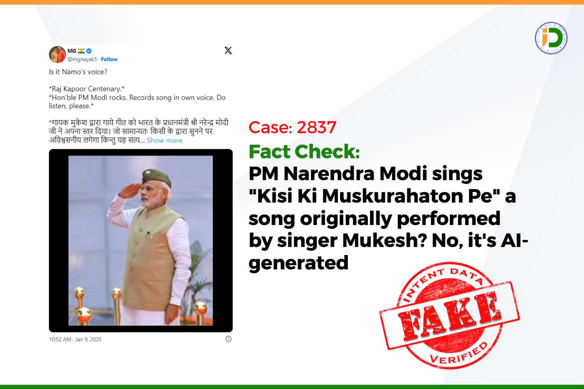 A video is circulating with the claim that Indian PM Narendra Modi is singing the song “Kisi Ki Muskurahaton Pe,” originally performed by Mukesh. However, this claim is false—the voice in the video is AI-generated and not related to reality.